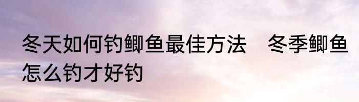 冬天如何钓鲫鱼最佳方法 冬季鲫鱼怎么钓才好钓