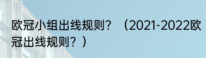 提及欧冠小组出线规则?(2021-2022欧冠出线规则?)的相关内容,许多人不太了解,来看看小敬的介绍吧!