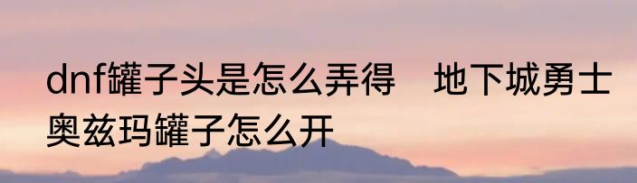 dnf罐子头是怎么弄得 地下城勇士奥兹玛罐子怎么开