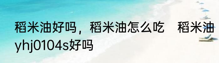 稻米油好吗,稻米油怎么吃 稻米油yhj0104s好吗