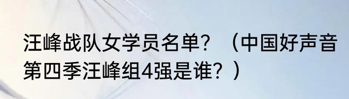 简介提及汪峰战队女学员名单?(中国好声音第四季汪峰组4强是谁?)的相关内容,许多人不太了解,来看看小明的介绍吧! 汪峰战队女学员名单?中