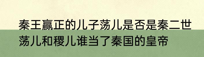 秦王赢正的儿子荡儿是否是秦二世 荡儿和稷儿谁当了秦国的皇帝