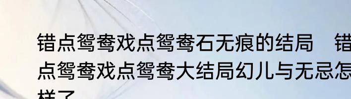 错点鸳鸯戏点鸳鸯石无痕的结局 错点鸳鸯戏点鸳鸯大结局幻儿与无忌怎样了