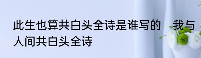 此生也算共白头全诗是谁写的 我与人间共白头全诗