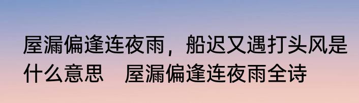 屋漏偏逢连夜雨,船迟又遇打头风是什么意思 屋漏偏逢连夜雨全诗