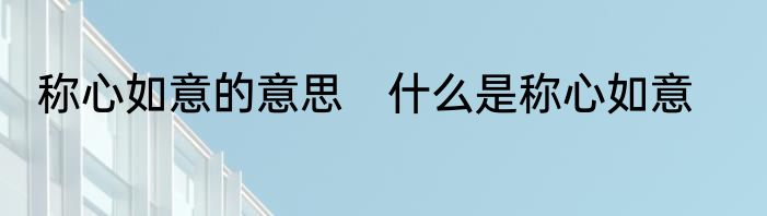 称心如意的意思 什么是称心如意