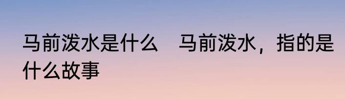 马前泼水是什么?