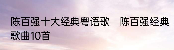 简介陈百强十大经典粤语歌?1 偏偏喜欢你2 一生何求3 眼泪为你流4 今宵多珍重5 我的故事6 等7 念亲恩8 烟雨凄迷9 涟漪10 凝望陈百强经典歌曲10