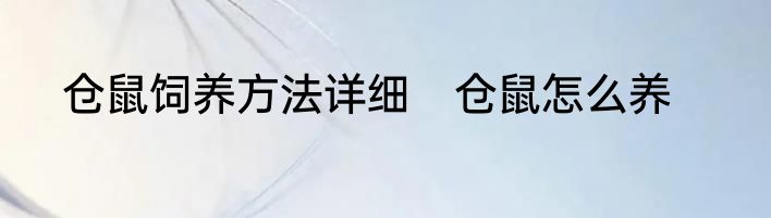 仓鼠饲养方法详细?