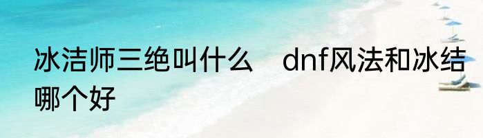 冰洁师三绝叫什么 dnf风法和冰结哪个好