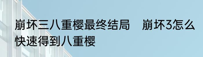 崩坏三八重樱最终结局 崩坏3怎么快速得到八重樱