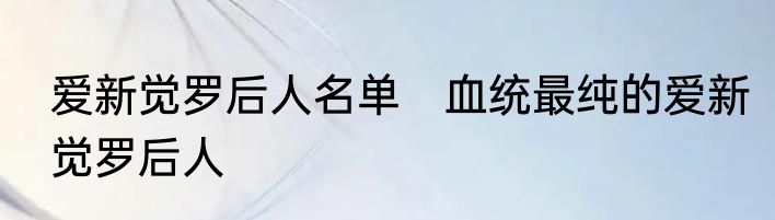 爱新觉罗后人名单 血统最纯的爱新觉罗后人