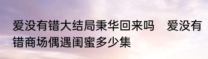 简介爱没有错大结局秉华回来吗?1没有。2因为《爱没有错》剧情设定中,秉华已经离开了,没有返场的情节。3但是观众可以期待该剧的后续剧情或者