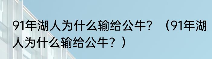 91年湖人为什么输给公牛?(91年湖人为什么输给公牛?)