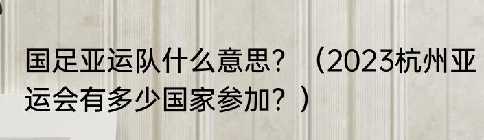简介提及国足亚运队什么意思?(2023杭州亚运会有多少国家参加?)的相关内容,许多人不太了解,来看看小业的介绍吧! 国足亚运队什么意思?国
