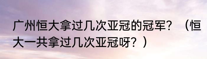 提及广州恒大拿过几次亚冠的冠军?(恒大一共拿过几次亚冠呀?)的相关内容,许多人不太了解,来看看小立的介绍吧!