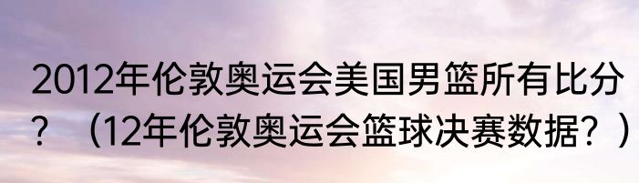 提及2012年伦敦奥运会美国男篮所有比分?(12年伦敦奥运会篮球决赛数据?)的相关内容,许多人不太了解,来看看小强的介绍吧!