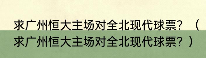 求广州恒大主场对全北现代球票?(求广州恒大主场对全北现代球票?)