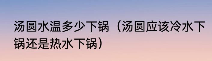 汤圆水温多少下锅(汤圆应该冷水下锅还是热水下锅)