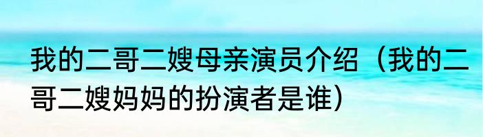 我的二哥二嫂母亲演员介绍(我的二哥二嫂妈妈的扮演者是谁)