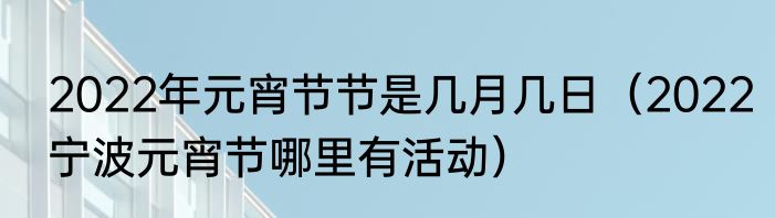 2022年元宵节节是几月几日(2022宁波元宵节哪里有活动)