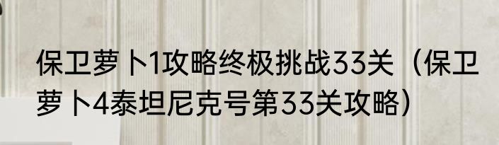 保卫萝卜1攻略终极挑战33关(保卫萝卜4泰坦尼克号第33关攻略)