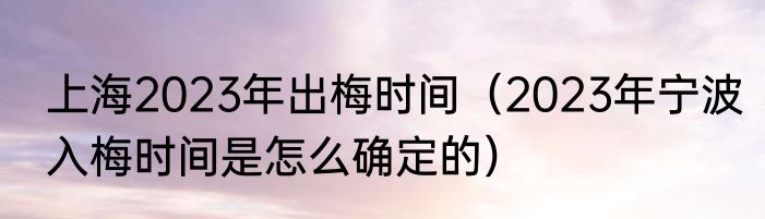 上海2023年出梅时间(2023年宁波入梅时间是怎么确定的)