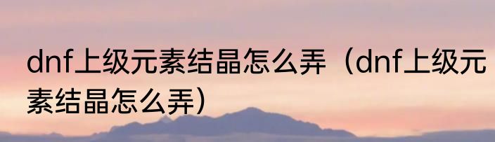 dnf上级元素结晶怎么弄(dnf上级元素结晶怎么弄)