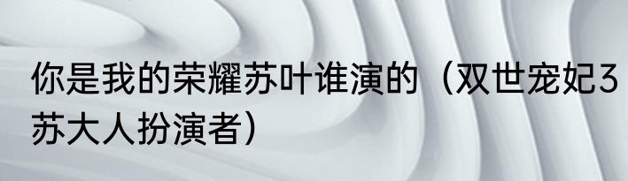 你是我的荣耀苏叶谁演的(双世宠妃3苏大人扮演者)