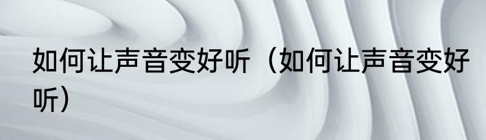 如何让声音变好听(如何让声音变好听)