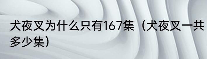 犬夜叉为什么只有167集(犬夜叉一共多少集)