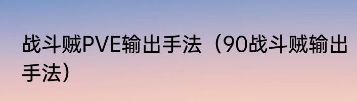 战斗贼PVE输出手法(90战斗贼输出手法)