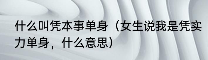 什么叫凭本事单身(女生说我是凭实力单身,什么意思)