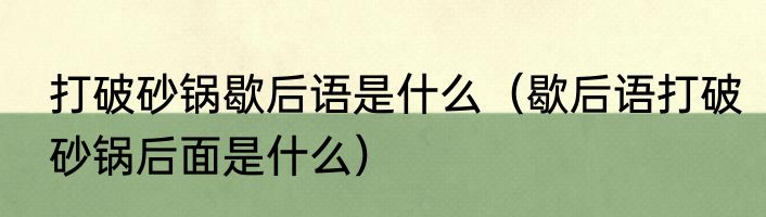打破砂锅歇后语是什么(歇后语打破砂锅后面是什么)