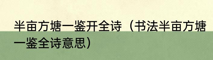半亩方塘一鉴开全诗(书法半亩方塘一鉴全诗意思)
