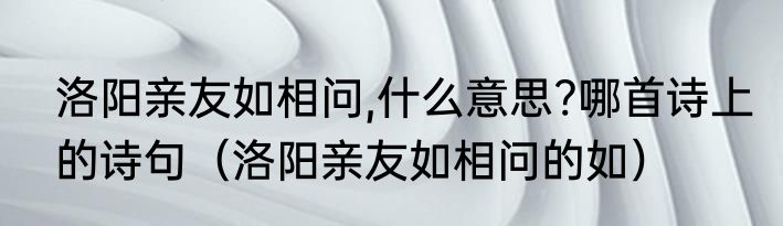 洛阳亲友如相问,什么意思?哪首诗上的诗句(洛阳亲友如相问的如)
