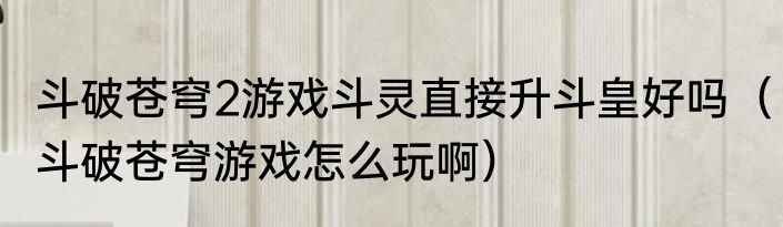 斗破苍穹2游戏斗灵直接升斗皇好吗?