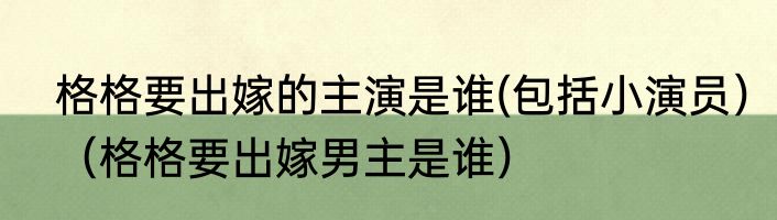 格格要出嫁的主演是谁(包括小演员)(格格要出嫁男主是谁)