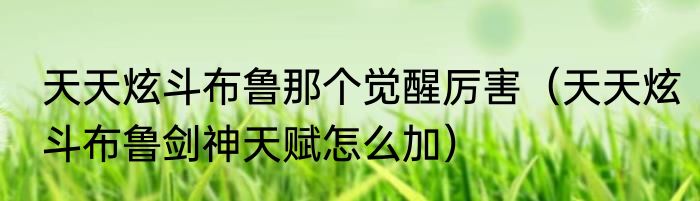 天天炫斗布鲁那个觉醒厉害(天天炫斗布鲁剑神天赋怎么加)