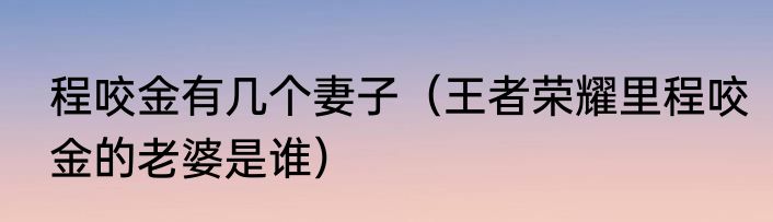 程咬金有几个妻子(王者荣耀里程咬金的老婆是谁)