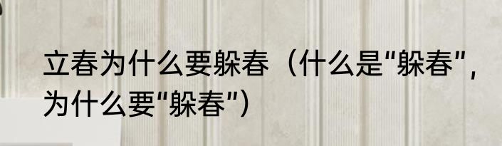立春为什么要躲春(什么是“躲春”,为什么要“躲春”)