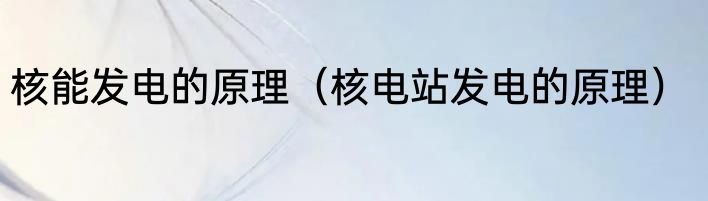 核能发电的原理(核电站发电的原理)
