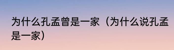 为什么孔孟曾是一家(为什么说孔孟是一家)