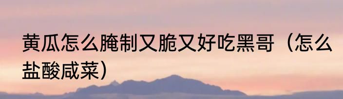 黄瓜怎么腌制又脆又好吃黑哥(怎么盐酸咸菜)