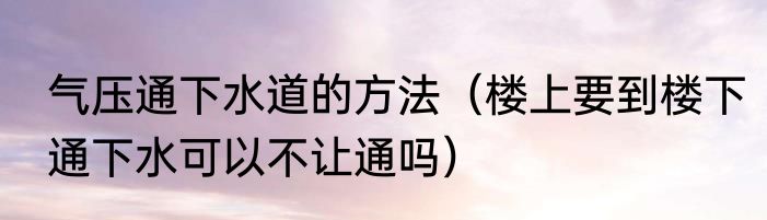气压通下水道的方法(楼上要到楼下通下水可以不让通吗)