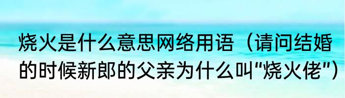 烧火是什么意思网络用语(请问结婚的时候新郎的父亲为什么叫“烧火佬”)