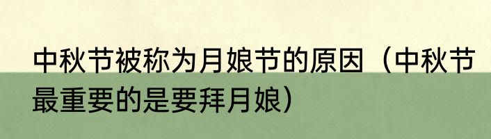 中秋节被称为月娘节的原因(中秋节最重要的是要拜月娘)