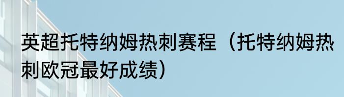 英超托特纳姆热刺赛程(托特纳姆热刺欧冠最好成绩)