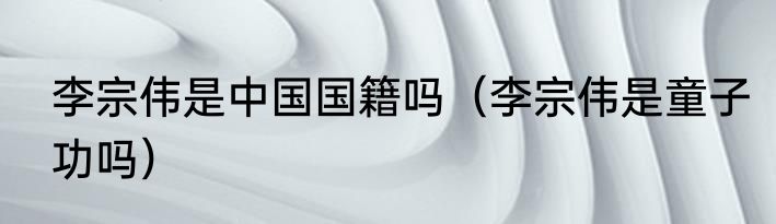 李宗伟是中国国籍吗(李宗伟是童子功吗)