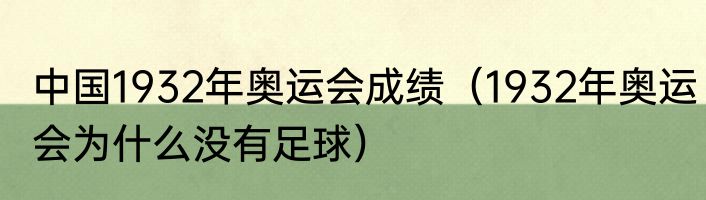 简介中国1932年奥运会成绩?没有拿到奖牌,中国只有两个运动员参加了。1932年奥运会为什么没有足球?那时候为了足球世界杯的影响力不受下降,足